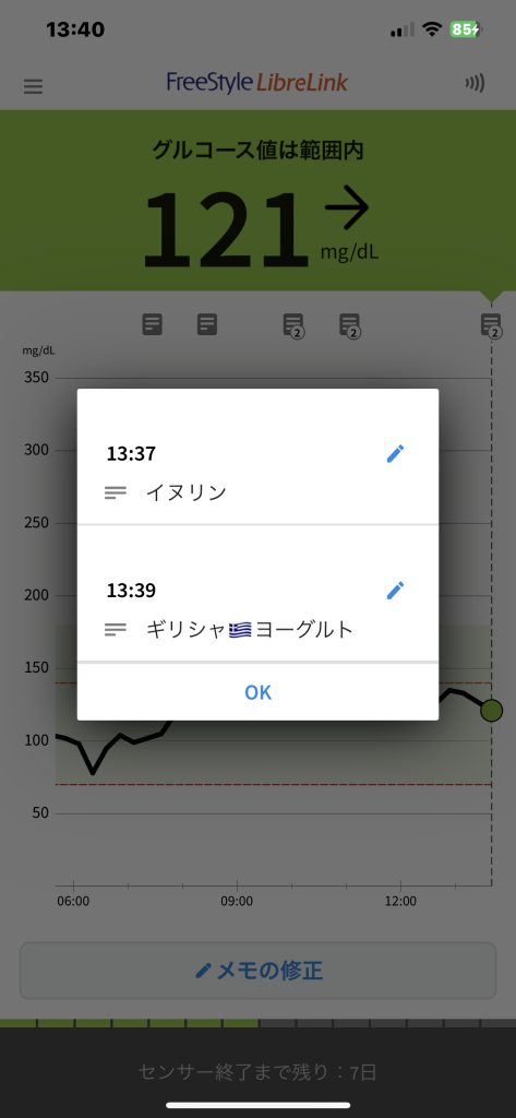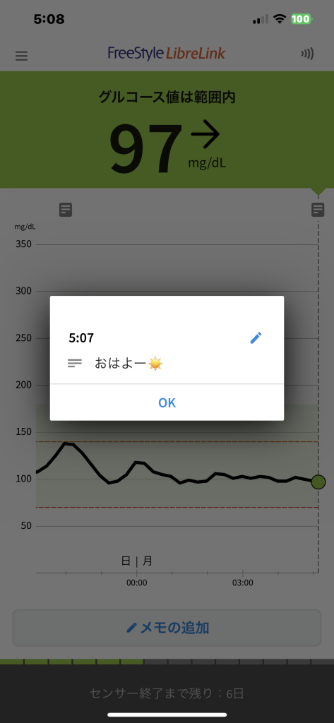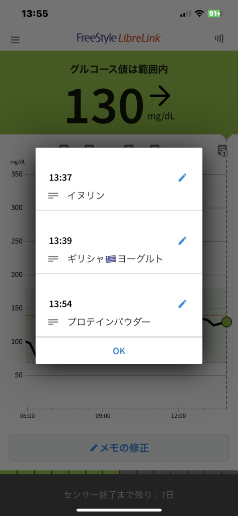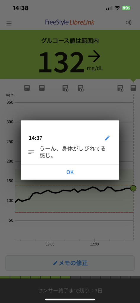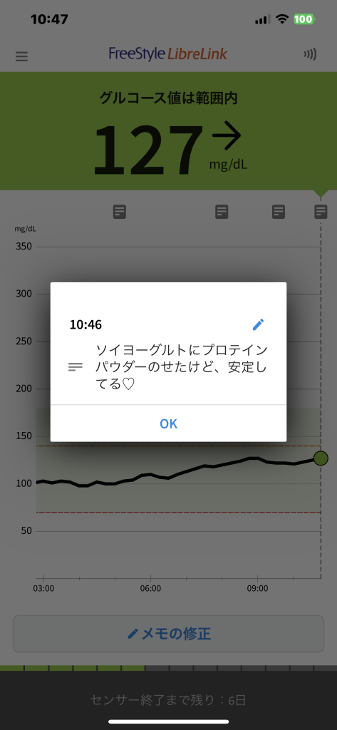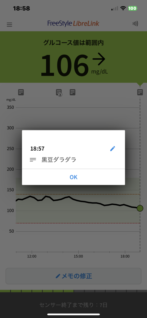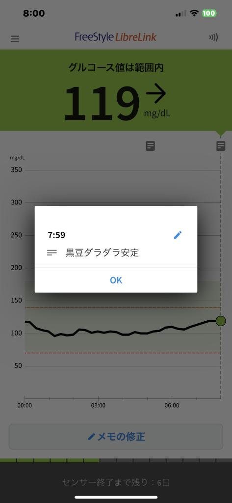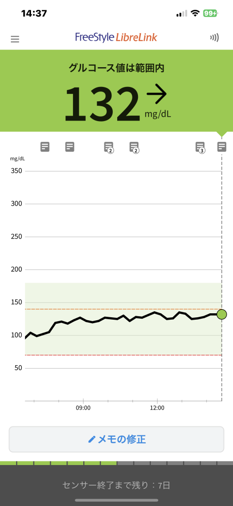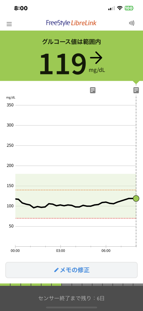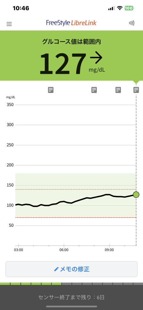 ここからプチファスティングも組み入れて血糖値(グルコース値)の変化をみていきます。