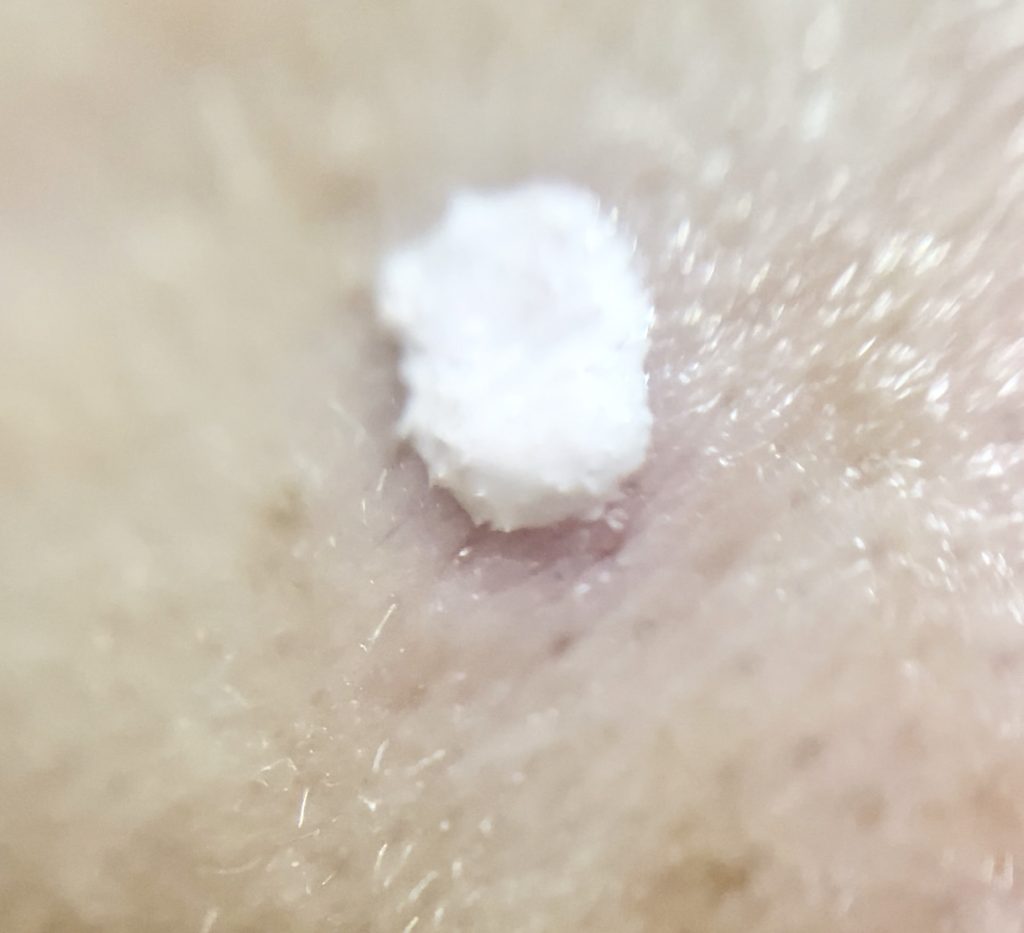 小さなニキビがかゆくて、爪でひっかいて皮がむけたけど、中央に皮脂の芯が残ってる状態からの…