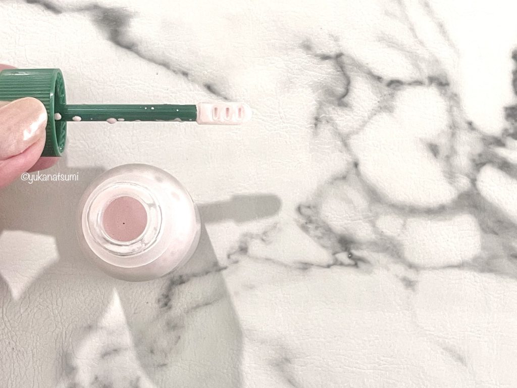 ピンクパウダーをのせたばかりだと液体ですが、しばらく置くと乾燥します。